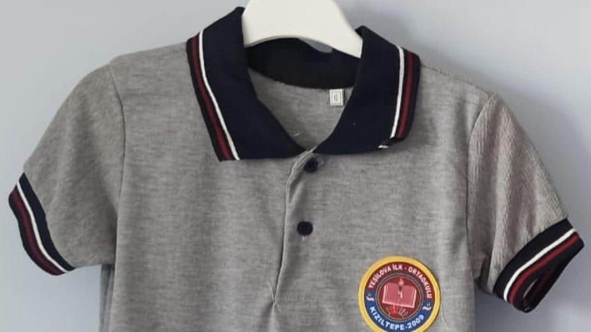 1. Üst yazlık kıyafet, hem kızlar hem de erkekler için; renk gri, kısa kolu, yaka ve kol bandı lacivert olacak,